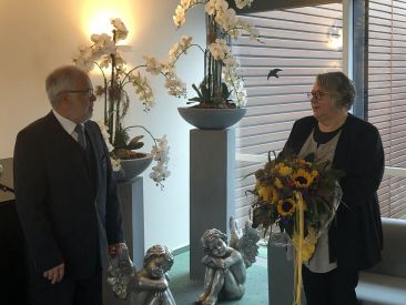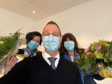 Der 1. April 2021 war ein besonderer Tag: Susanne Greenland-Hofmann und Melanie Meves sind nun 20 Jahre beim GE·BE·IN und das musste natürlich gefeiert werden! Herwig Gründel überraschte die beiden Jubilarinnen in "ihrem" Haus in Walle mit Blumen und Schokolade. Coronabedingt in kleinerem Rahmen, konnte er den beiden die ein oder andere Anekdote aus den letzten Jahren entlocken. Und wir hoffen natürlich, dass wir euer nächstes Firmenjubiläum wieder in größerer Runde feiern können. :)