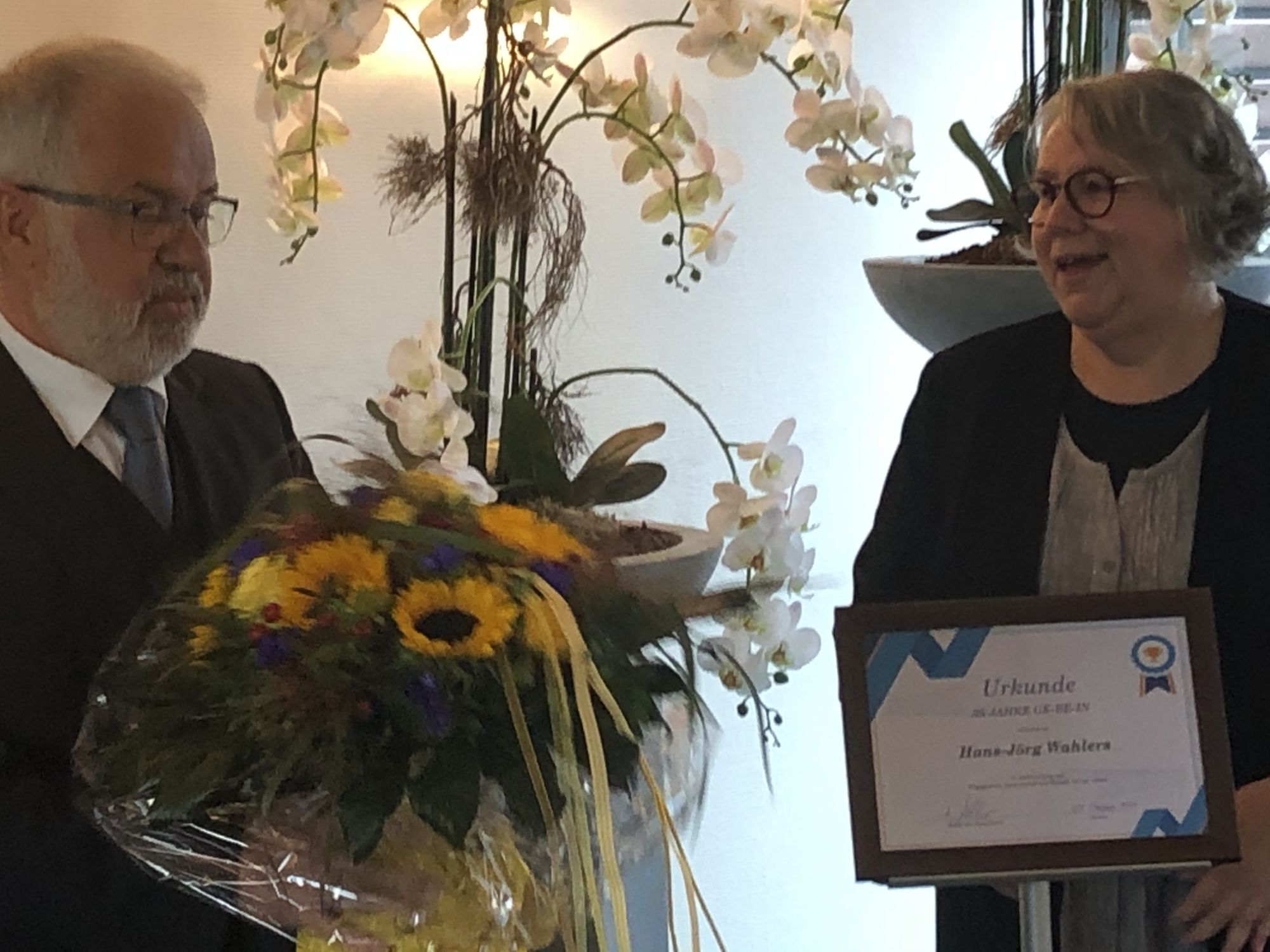 Nach 35 Jahren Firmenzugehörigkeit hatte Hans-Jörg Wahlers im Oktober so einige Glückwünsche entgegenzunehmen. Mit entsprechendem Abstand wurde sein Einsatz für das GE·BE·IN gefeiert und danke gesagt. Jörg hatte auch die Gelegenheit, von seinen Stationen bei uns und einigen Anekdoten aus den letzten 35 Jahren zu berichten...