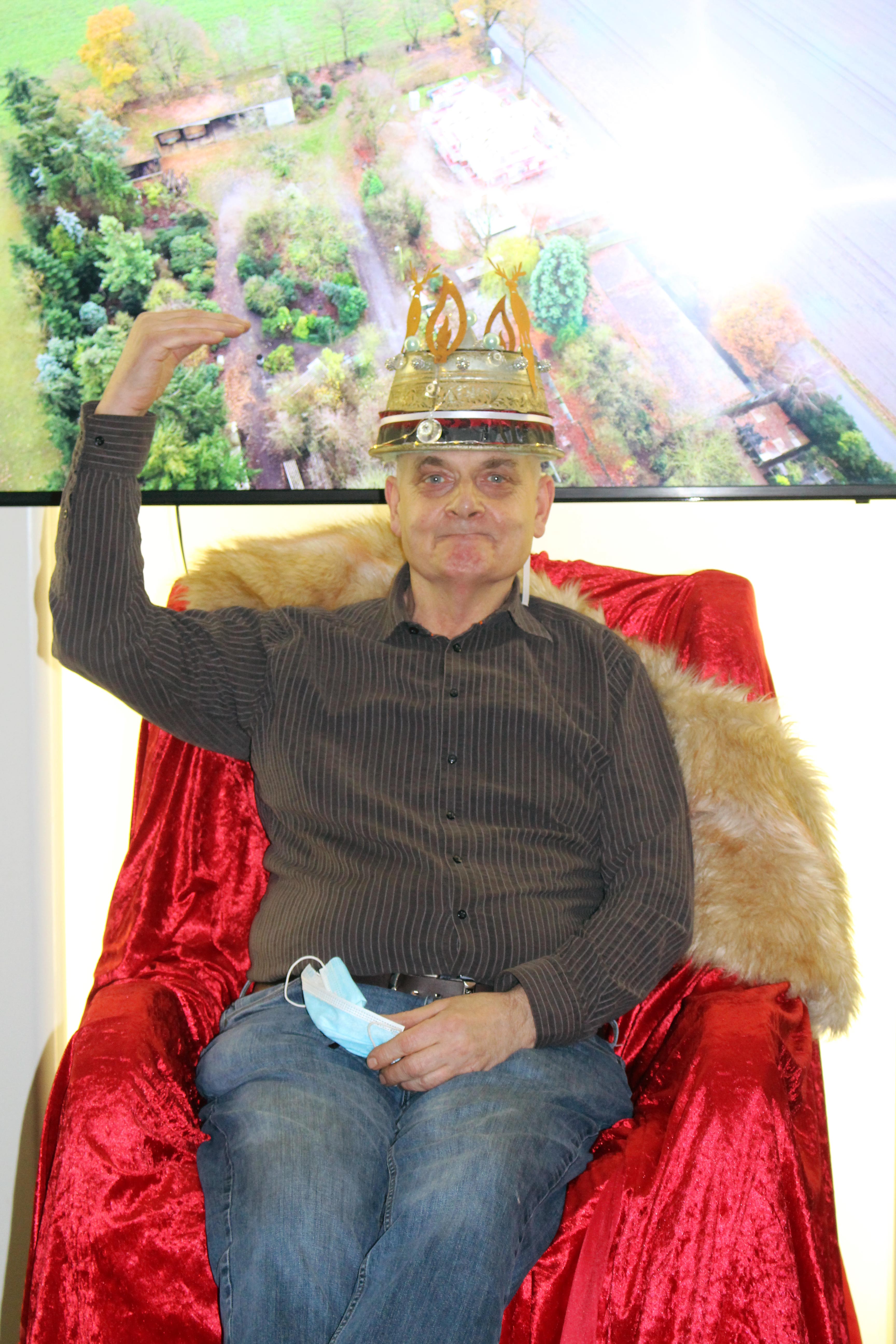 In der Woche vor Weihnachten war es dann soweit: Friedhelm Kayser wurde in den Ruhestand verabschiedet! Nach so vielen Jahren beim GE·BE·IN reichten als Abschied natürlich nicht nur ein Blumenstrauß und warme Worte. Seine Kollegen aus der Floristik befanden, dass ein Thron und eine Krone gerade mal gut genug waren und so wurde die gesamte Feierhalle kurzerhand umgebaut.