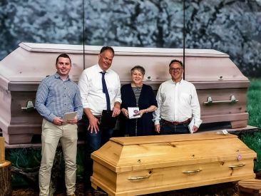 Am 15. und 16. Juni 2019 fand bei einem unserer Sarglieferanten, der Firma Sargbau Schmidt-Hendker in Glandorf bei Osnabrück, eine Hausmesse statt. Um sich über die Produktion und neue Särge zu informieren, waren Gisela Sender, Christian Wulf und Lenne Seekamp vor Ort.