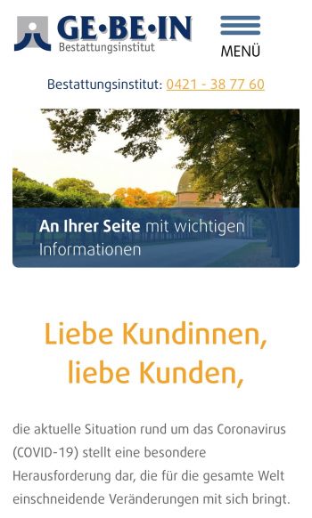 Die GE·BE·IN Welt ist ständig in Bewegung und wir möchten Sie daran teilhaben lassen. So sprechen wir offen über Tod, Trauer und unser Bestattungsinstitut, um Ängste zu nehmen und Zuversicht zu geben.