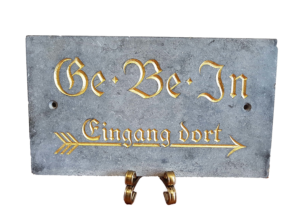Auf verschlungenen Pfaden ist die Einlassplatte aus dem früheren Standort Volkshaus wieder zu uns gelangt. Diese ziert jetzt, frisch gereinigt und coloriert, die Vitrine im Eingangsbereich der Nordstraße.